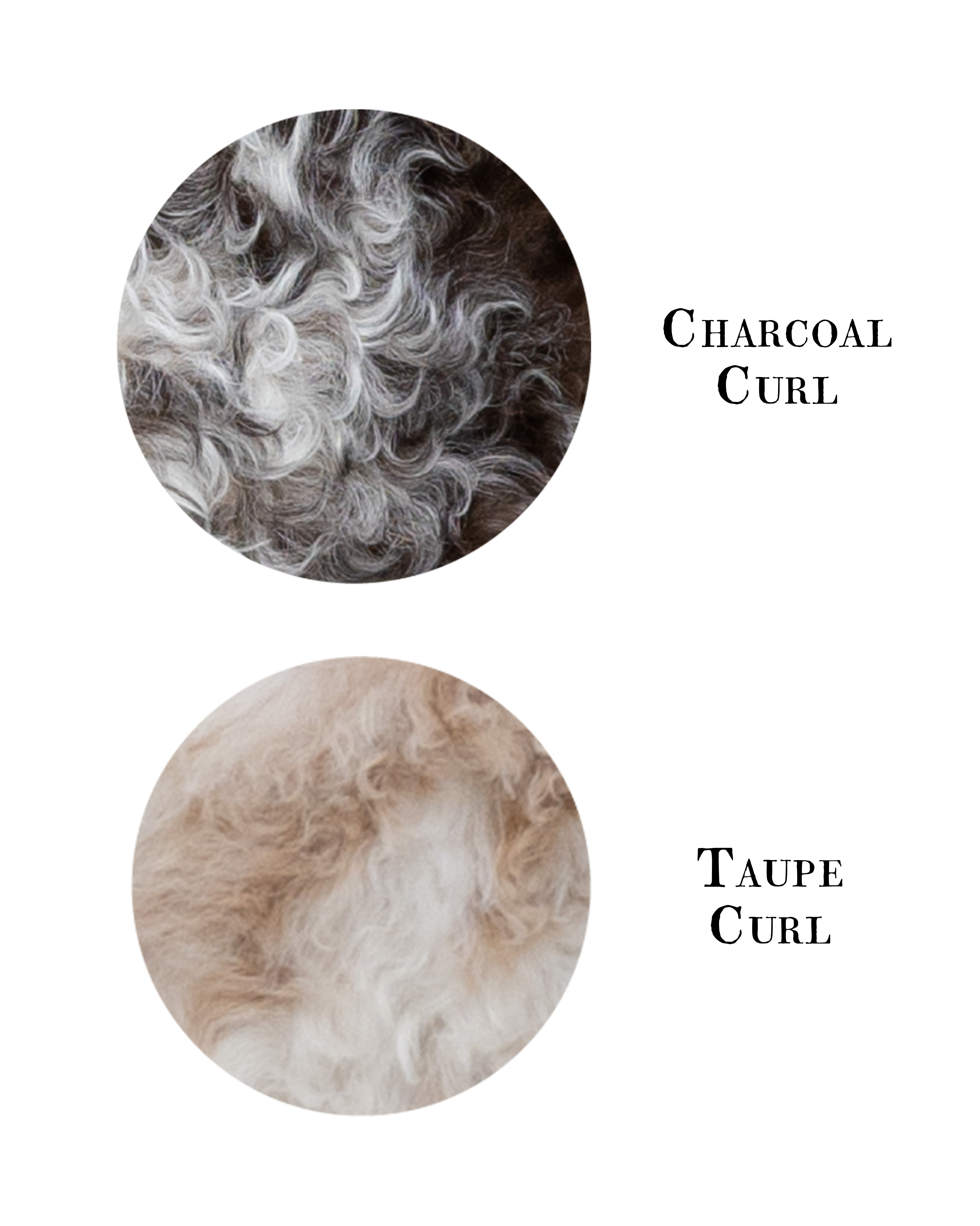 Available in Taupe Curl or Charcoal Curl