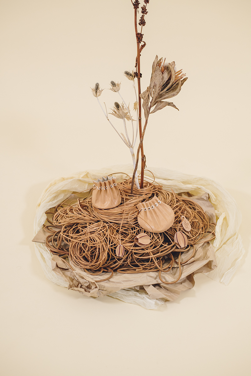 In this collection art and fashion reinforce with the natural elements to elaborate on their surroundings. It aims to return to nature, display the possibility of stepping back in time through nature. This collection explores the function of plant-like and offers a glimpse back in time through organic forms.