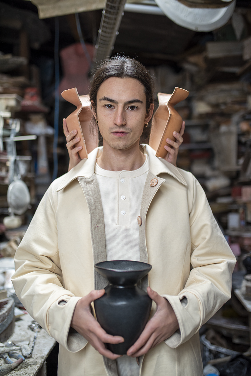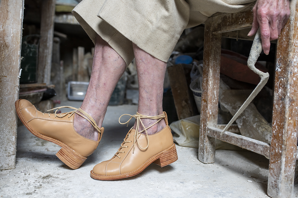 This collection consists of shoes, boots, clothing and bags inspired by a variety of traditional occupations, from fishermen to market vendors. Each item represents the distinctive personality of each occupation, and exposes the eccentricity of the wearer.